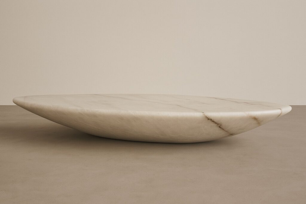 A sculptural coffee table reduced to a single, fluid gesture. Its elongated form rises subtly at the center, then tapers toward the edges—balancing mass and lightness in perfect equilibrium. The marble’s natural veining adds organic complexity to its minimalist profile, making each piece unique. Polished by hand to a soft satin sheen, the surface invites touch and reflection. Coffee Table .0029 embodies the quiet power of stone—timeless, elemental, and effortlessly contemporary.