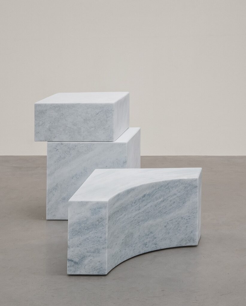A set of sculptural marble modules exploring balance and spatial rhythm. Each block—rectilinear, curved, or stepped—functions independently or in composition, inviting architectural dialogue within a space. The honed surface softens the stone’s inherent strength, revealing delicate veining and tonal variation. Through repetition and juxtaposition, Modular Blocks .0037 transforms weight into gesture—a study of mass, light, and tension refined through pure material presence.