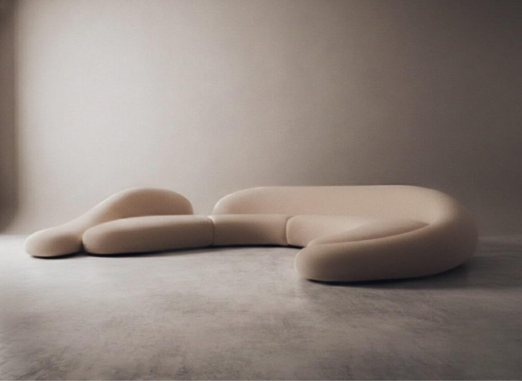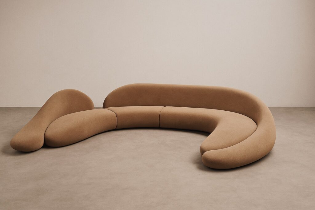 A fluid, organic composition that redefines spatial rhythm. Sofa .007 unfolds in a continuous curve, embracing the room with its generous, soft-edged geometry. Each module transitions seamlessly into the next, merging backrest and seat in a single sculptural gesture. The camel-toned upholstery enhances its warmth and tactility, emphasizing the natural interplay of light and contour. An emblem of contemporary softness and sculptural discipline—where comfort and form coexist in equilibrium.
