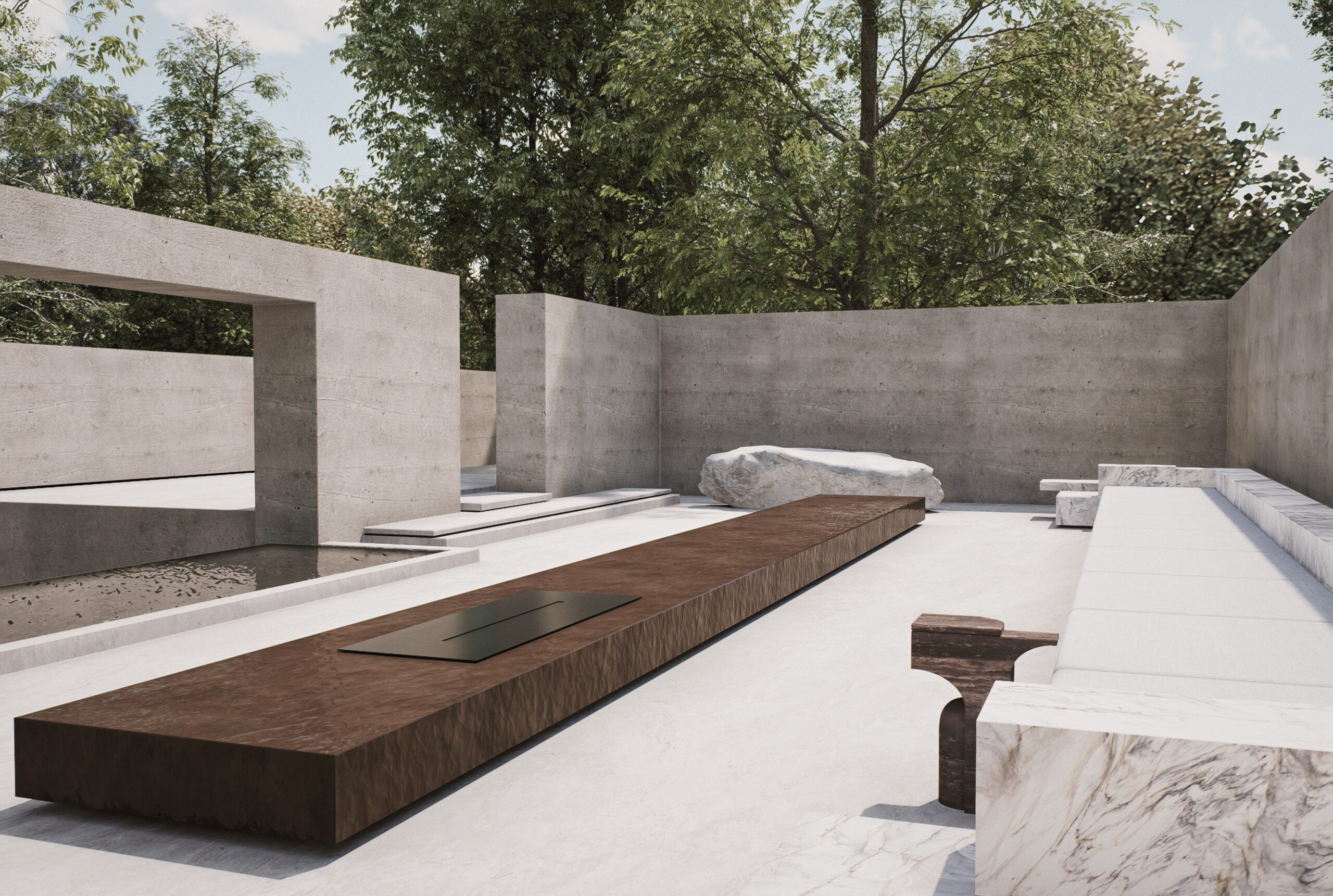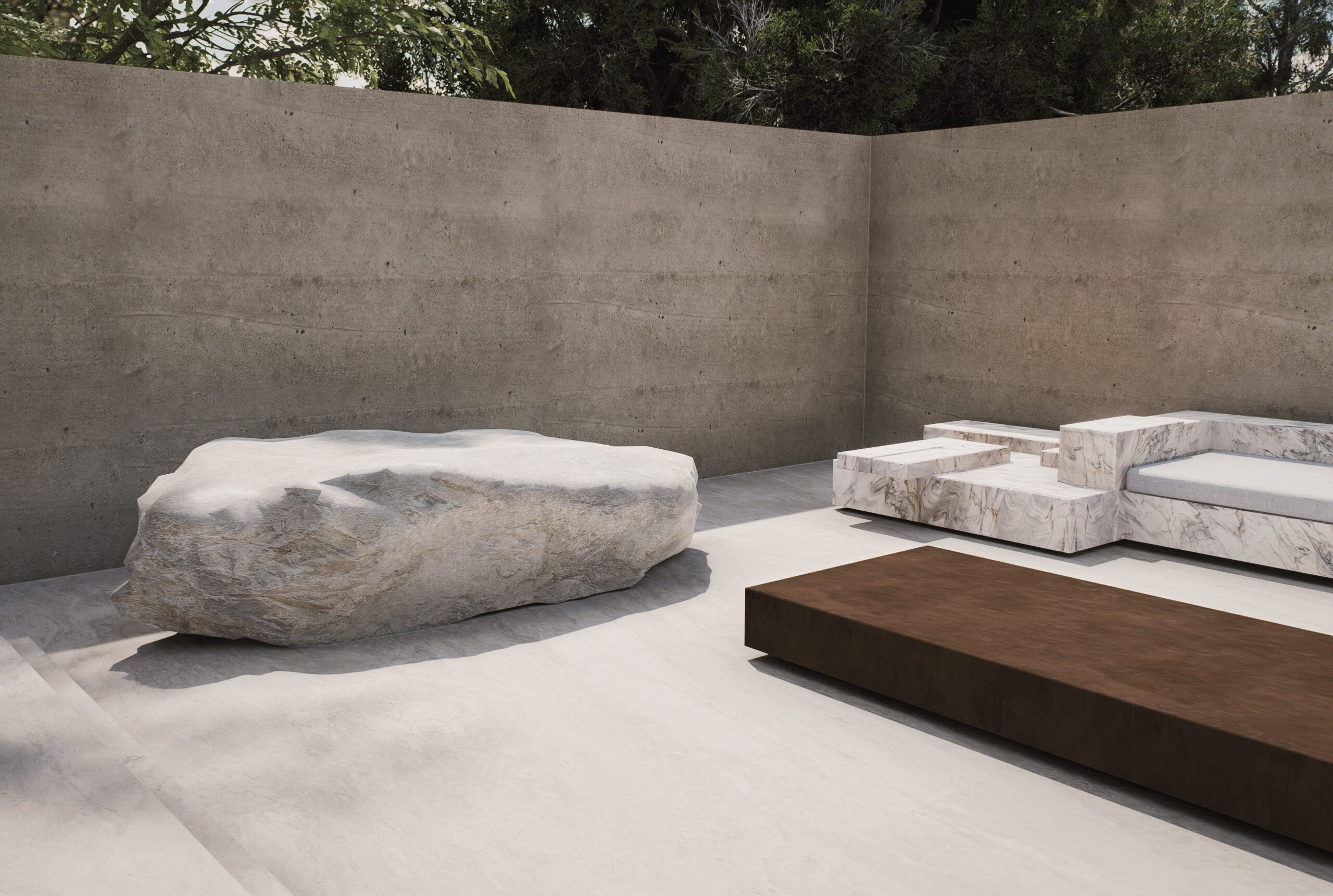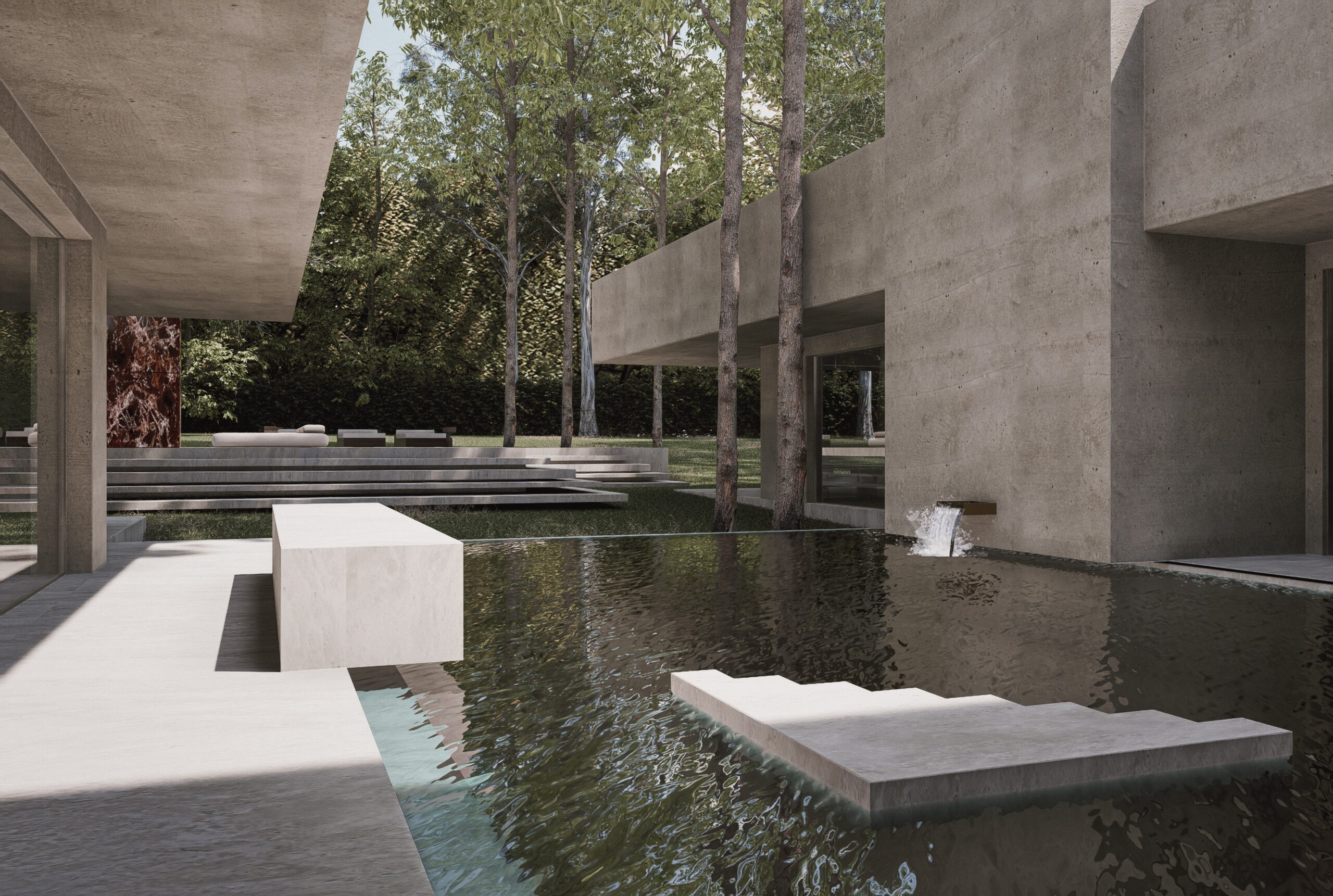 Conceived as a brutalist statement, D Residence explores the intersection of mass and light through raw concrete geometry and monumental proportions. Oversized openings dissolve the boundary between interior and exterior, while the furnishings introduce a dialogue between maximalist presence and curated restraint. The result is an architectural landscape shaped by form, silence, and memory—anchored in the sensibility of 1980s modernism and layered with art and collectible design.
