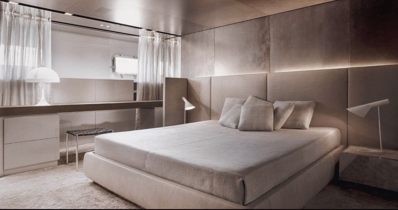 A bespoke interior for a Sanlorenzo yacht, designed to express serenity through form and tone. Soft hues, sculptural lines, and subtle contrasts define an atmosphere of quiet sophistication — a seamless dialogue between craftsmanship and the calm horizon.