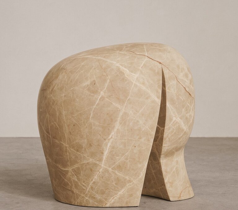 A sculptural stone form defined by soft volume and quiet precision. Its curved silhouette and subtle fissures evoke both geological time and human touch. Poised between art and furniture, it introduces warmth, balance, and tactile depth to any contemporary space.