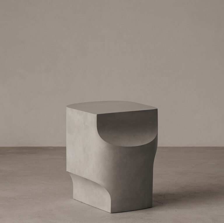 A monolithic form reduced to its essence. This sculptural side table plays with volume and void, its soft edges and cool matte finish evoking quiet architecture. Both grounded and refined, it brings a sense of balance and permanence to contemporary interiors.